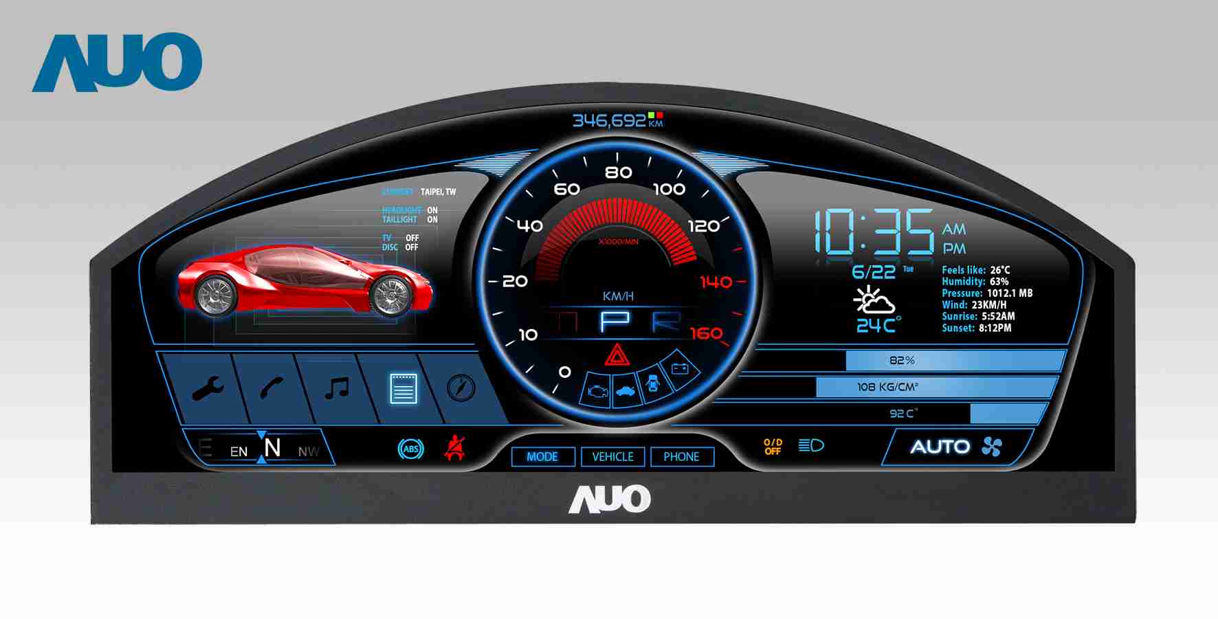 尊龙集团 12.3吋超高解析异型切割车用面板,,,拥有流线外观及精细画质