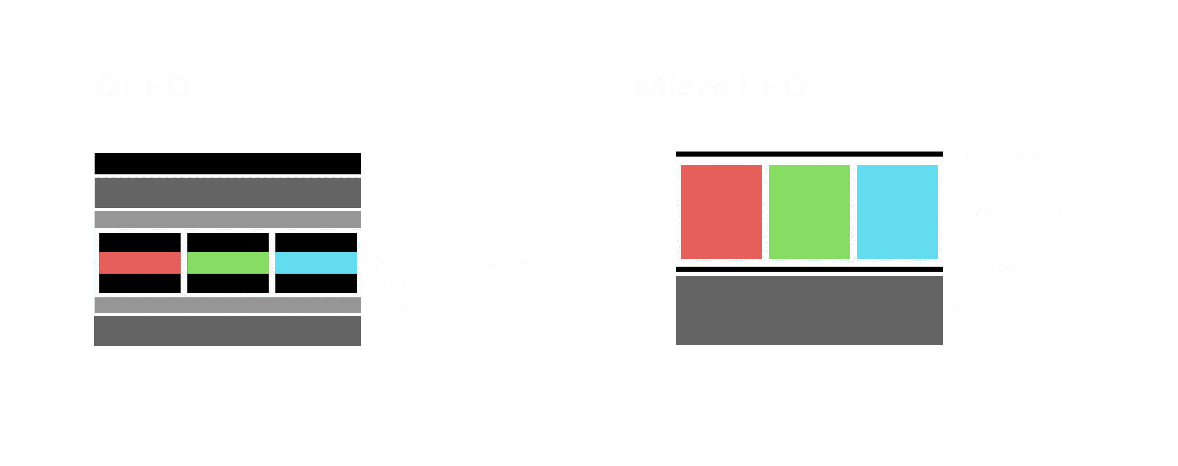 以 LED 做为显示画素,,,,可让 LED 的发光效率发挥到极致,,,从而让显示器具备优异的亮度表现,,,,不论是在户外或室内,,,,均具备出众的显示效果。。。。同时,,与使用有机材料的 OLED 相比,,,,LED 具备更稳定、、、、寿命更长的特性,,,,不仅不会有画面烙印问题,,,,而且更不容易出现故障、、坏点。。。