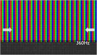 传统液晶驱动是从左到右单向进行,,,,在画面更新速度愈来越愈快的情况下,,位于驱动线路末端的右下角区域,,,,画素的闸极来不及在短时间内获得足够电压,,,无法显示出正确的颜色资讯。。。 |