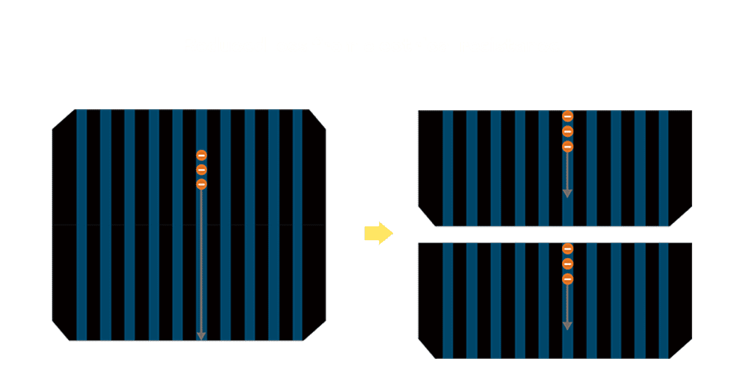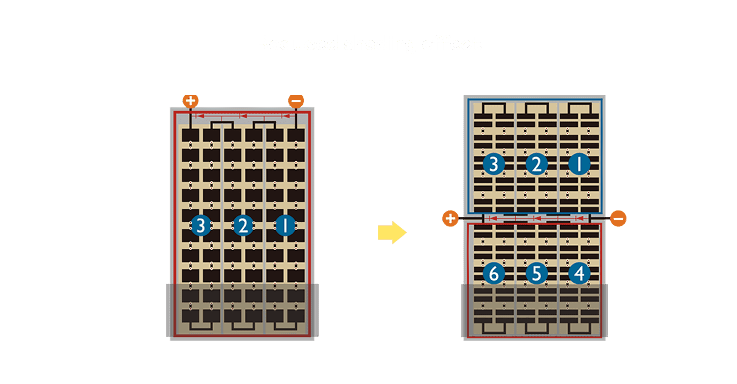 • 电池使用多条铜导线 (Copper wire) 于电池片上形成较短的电流路径,,,提高电流收集效率,,,采用圆形设计的铜导线较传统扁平式的铜焊带 (Ribbon),,可增加入射至电池的光线量。。。。